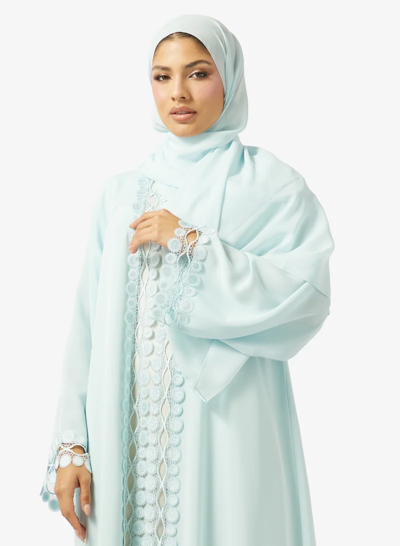 Elevate your modest wardrobe with our elegant Lace Detailed Open Front V Neck Abaya, designed for timeless sophistication and effortless style. Featuring delicate lace detailing along the sleeves and front edges, this abaya adds a graceful feminine touch to your everyday and occasion wear.